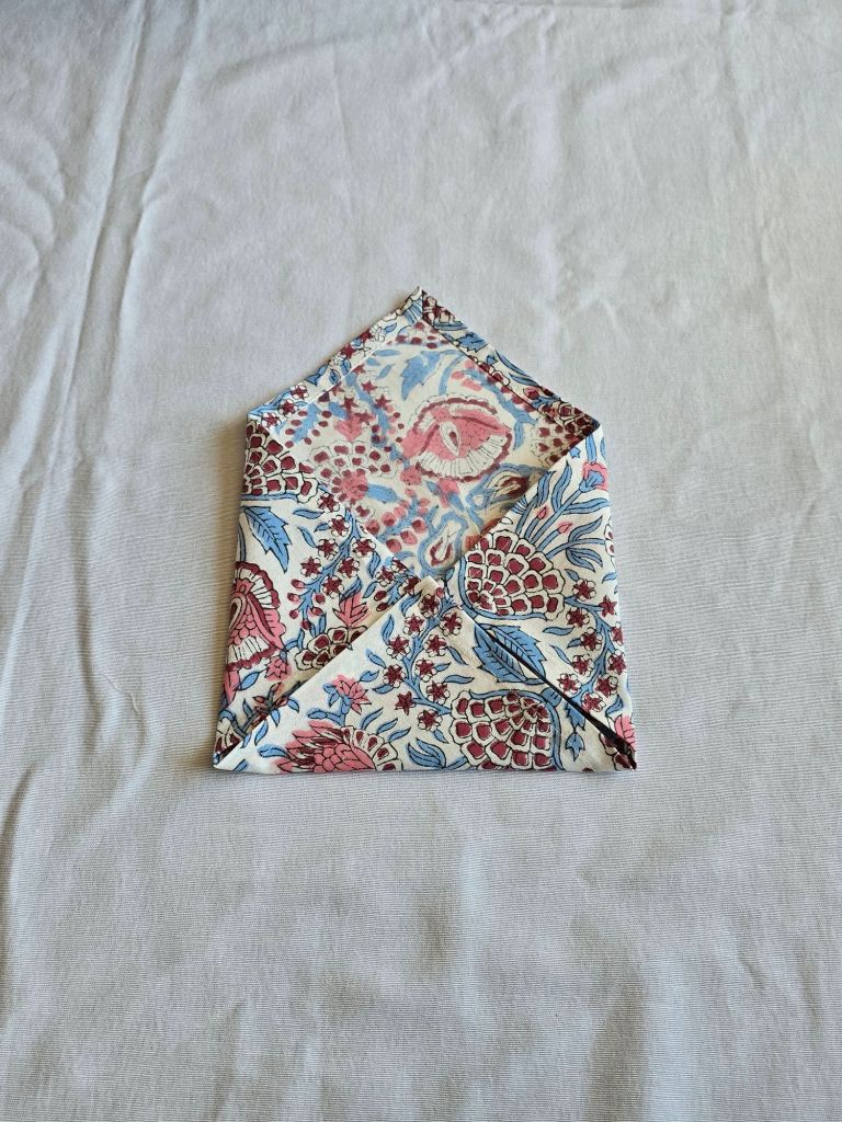 Turning a square napkin into a cute envelope napkin isn’t all that hard. It honestly reminds me of making envelopes with paper as a kid. My biggest tip, use an iron.